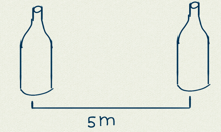5メートルごとに瓶を載せる。 To put down a bottle every 5 meters